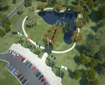 Our vision These renderings depict what the Veterans Memorial Walk eventually will look like. The design includes an entry walkway to the memorial with a monument and flags. Guests will follow a semi-circular path, adorned with 10 benches, past mini-monuments representing each branch of the service. A special monument honoring America’s missing in action will be part of the memorial walk, which, in its entirety, will be about the size of a baseball field.